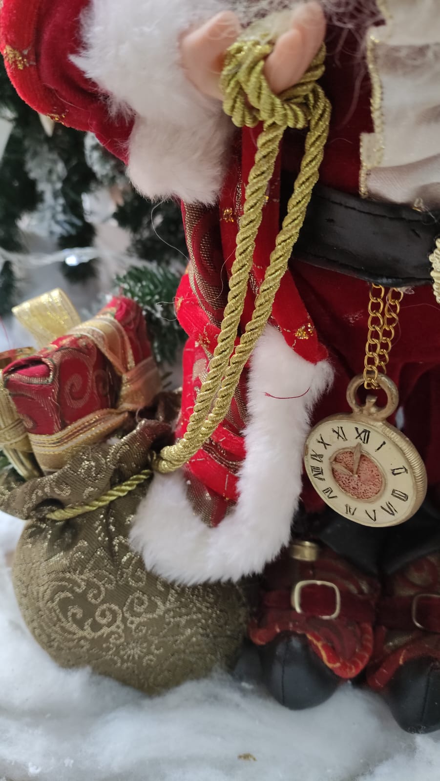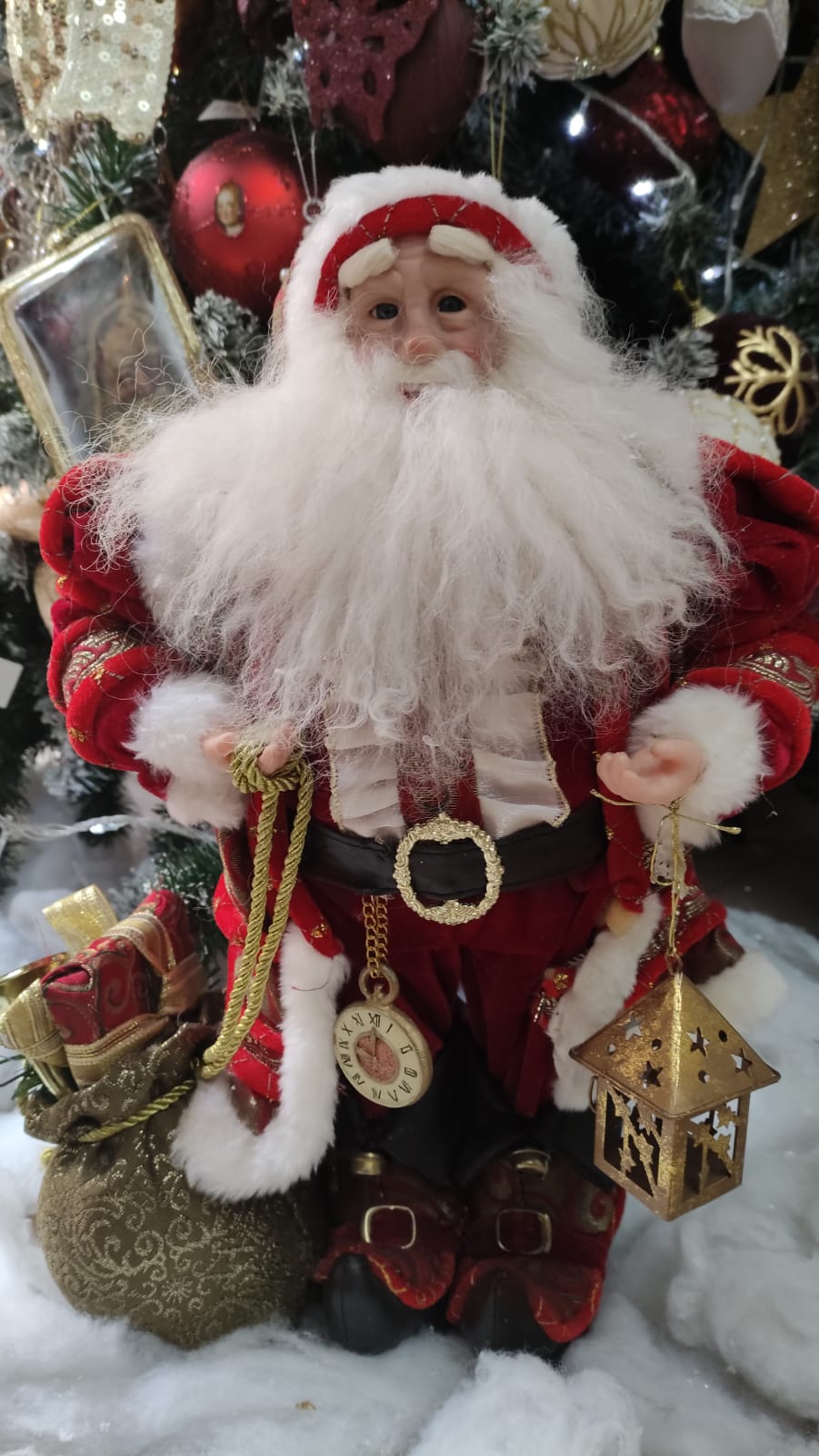 Babbo Natale da collezione in velluto rosso con lanterna oro e sacco doni cm 50