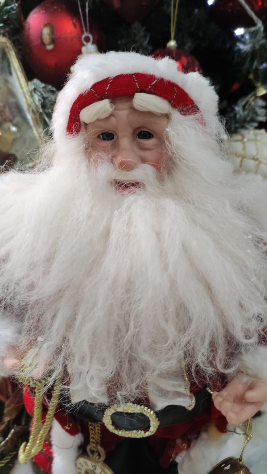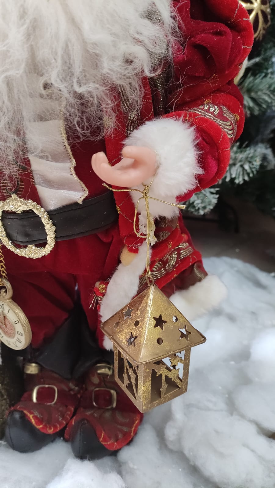 BABBO NATALE DA COLLEZIONE IN VELLUTO ROSSO CON LANTERNA