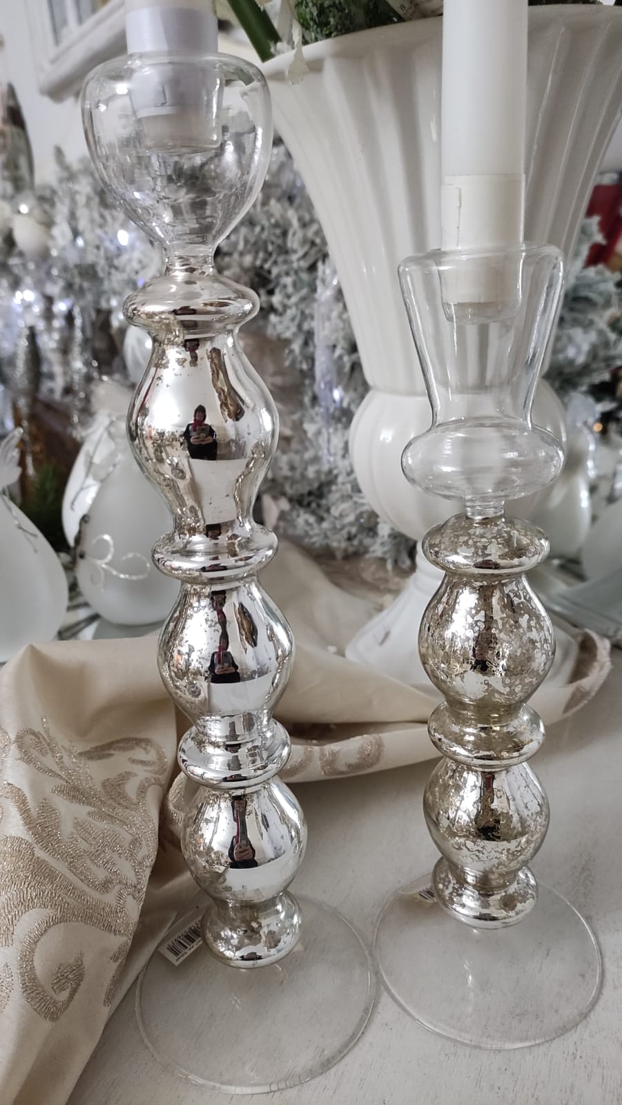 Coppia porta candela argento in vetro grande cm 32 - piccolo cm 26