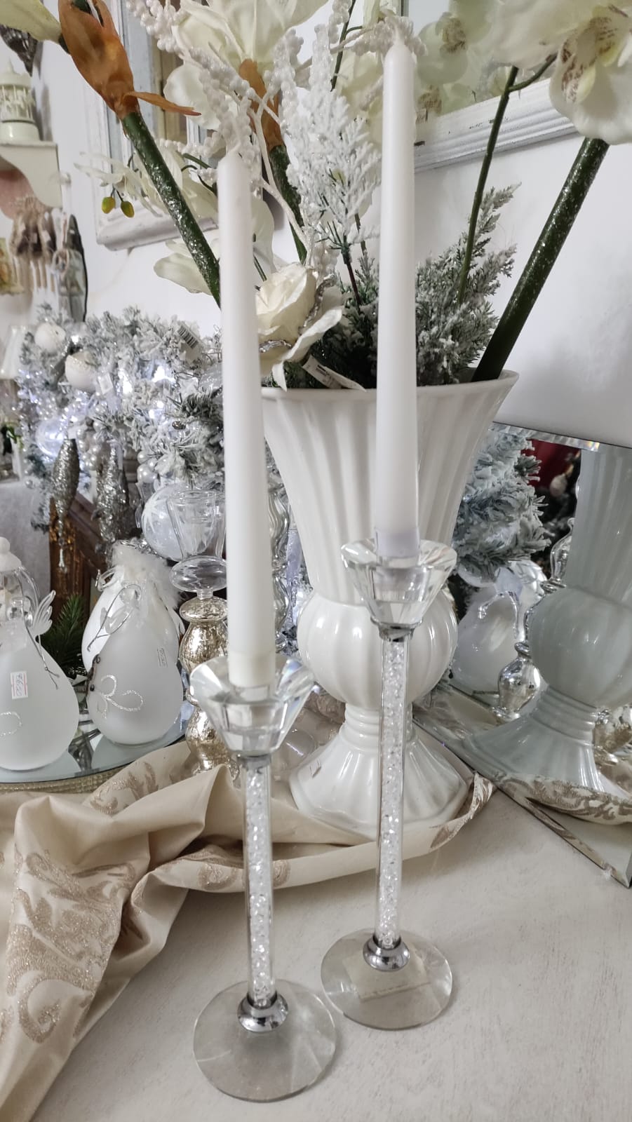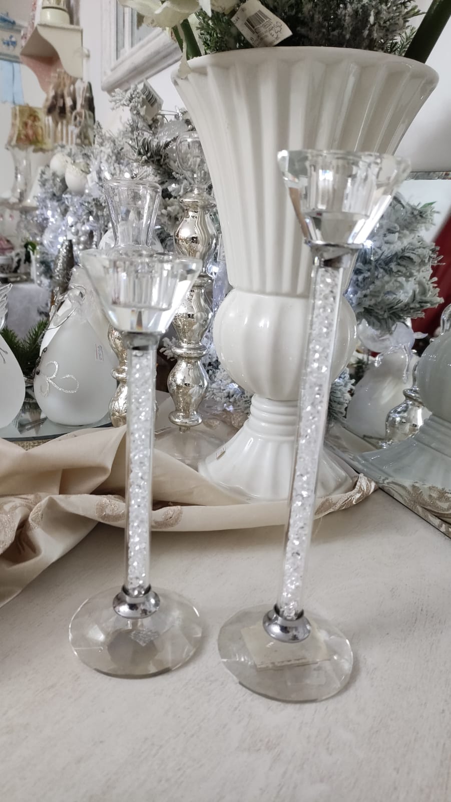 Coppia di porta candela con piede cristalli Swarovski grande cm 27 - piccolo cm 22
