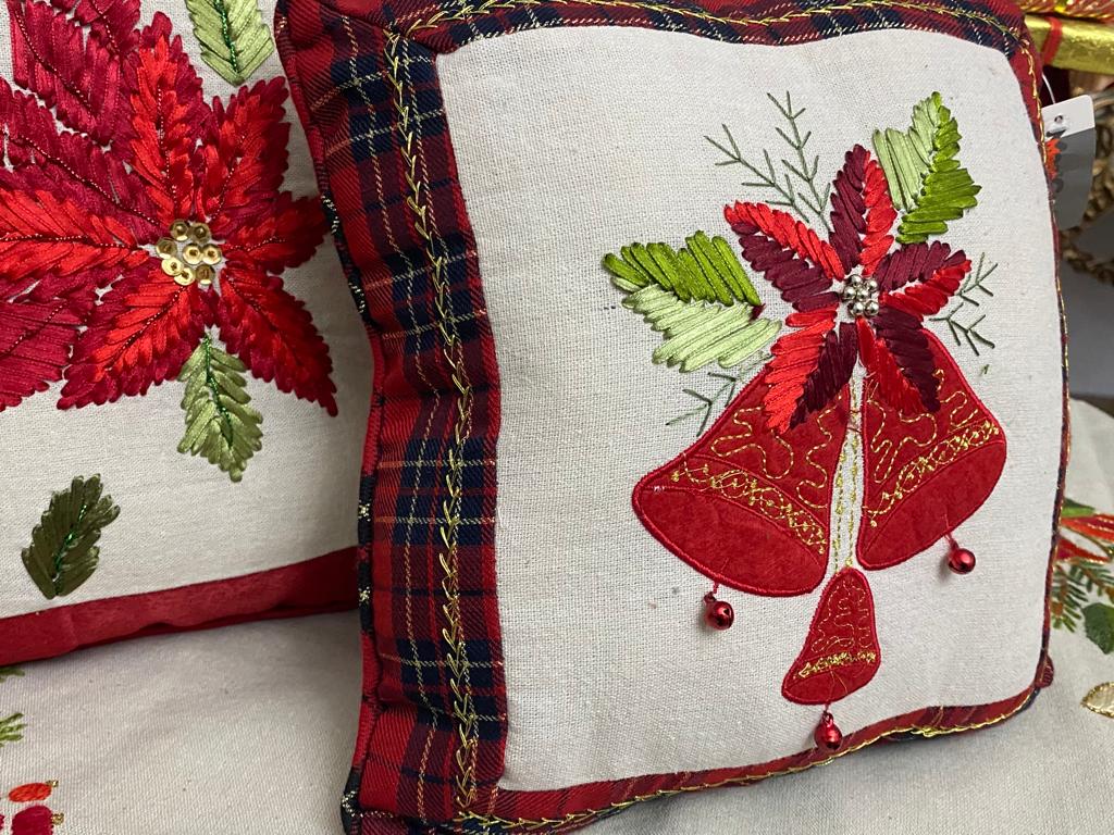 Cuscino rosso tartan con decorazione campane cm 25x25