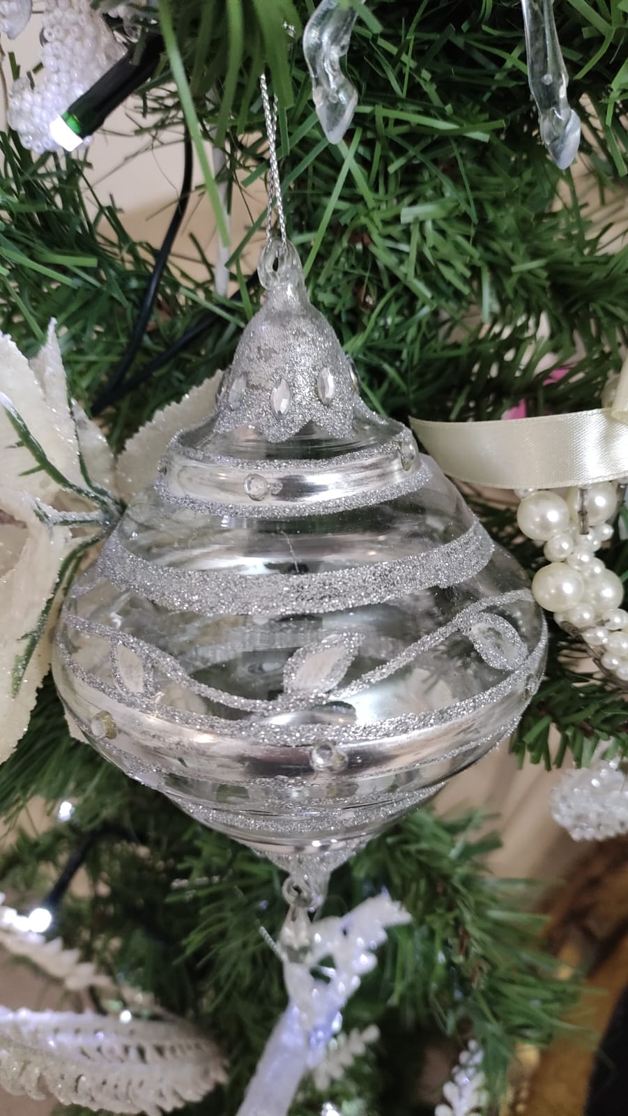 DECORAZIONE ALBERO DI NATALE VETRO E ARGENTO