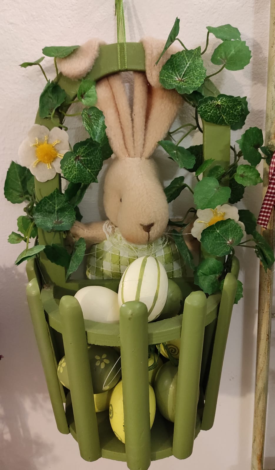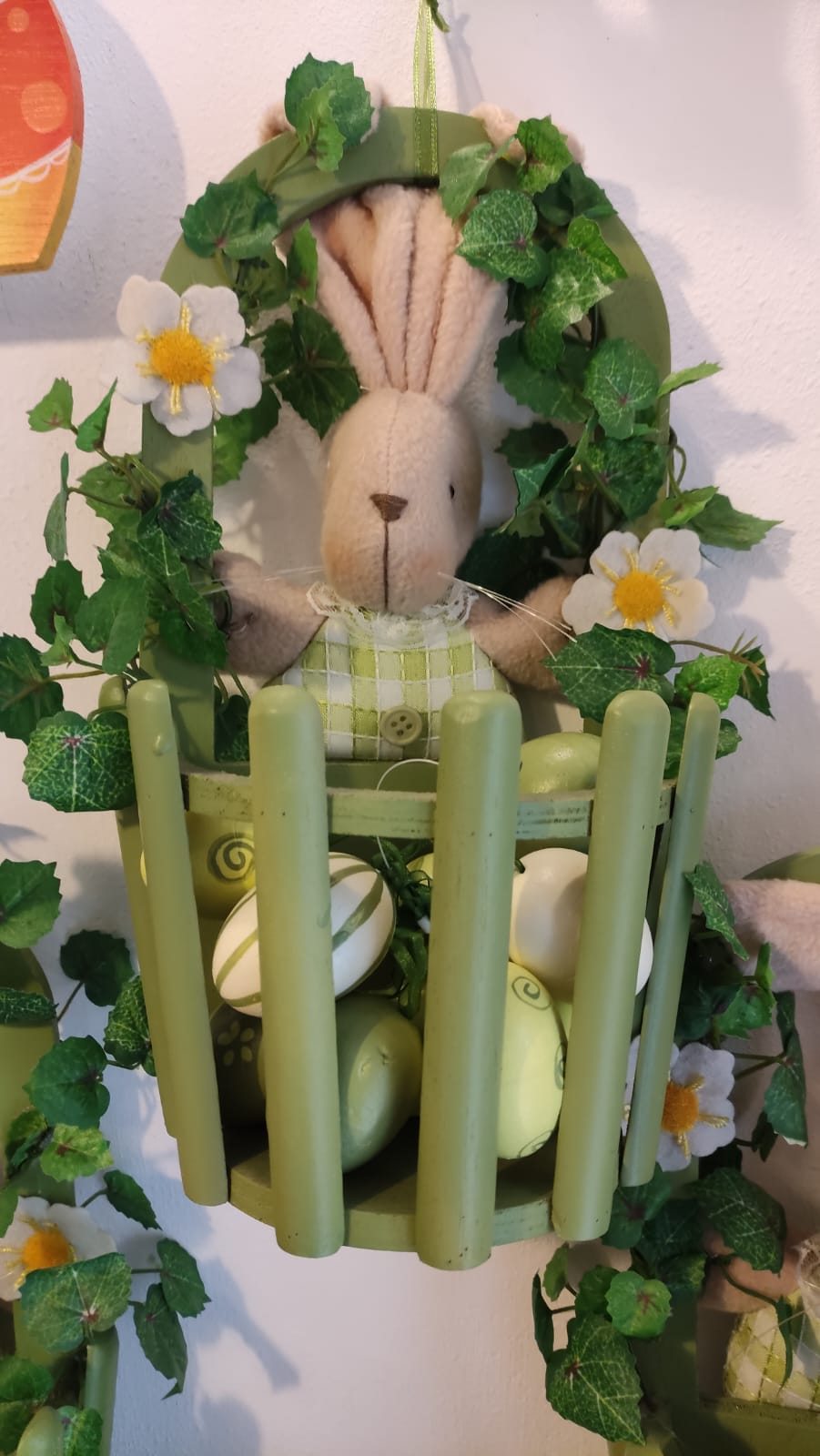DECORAZIONE PASQUA CONIGLIO CON UOVA CESTINO