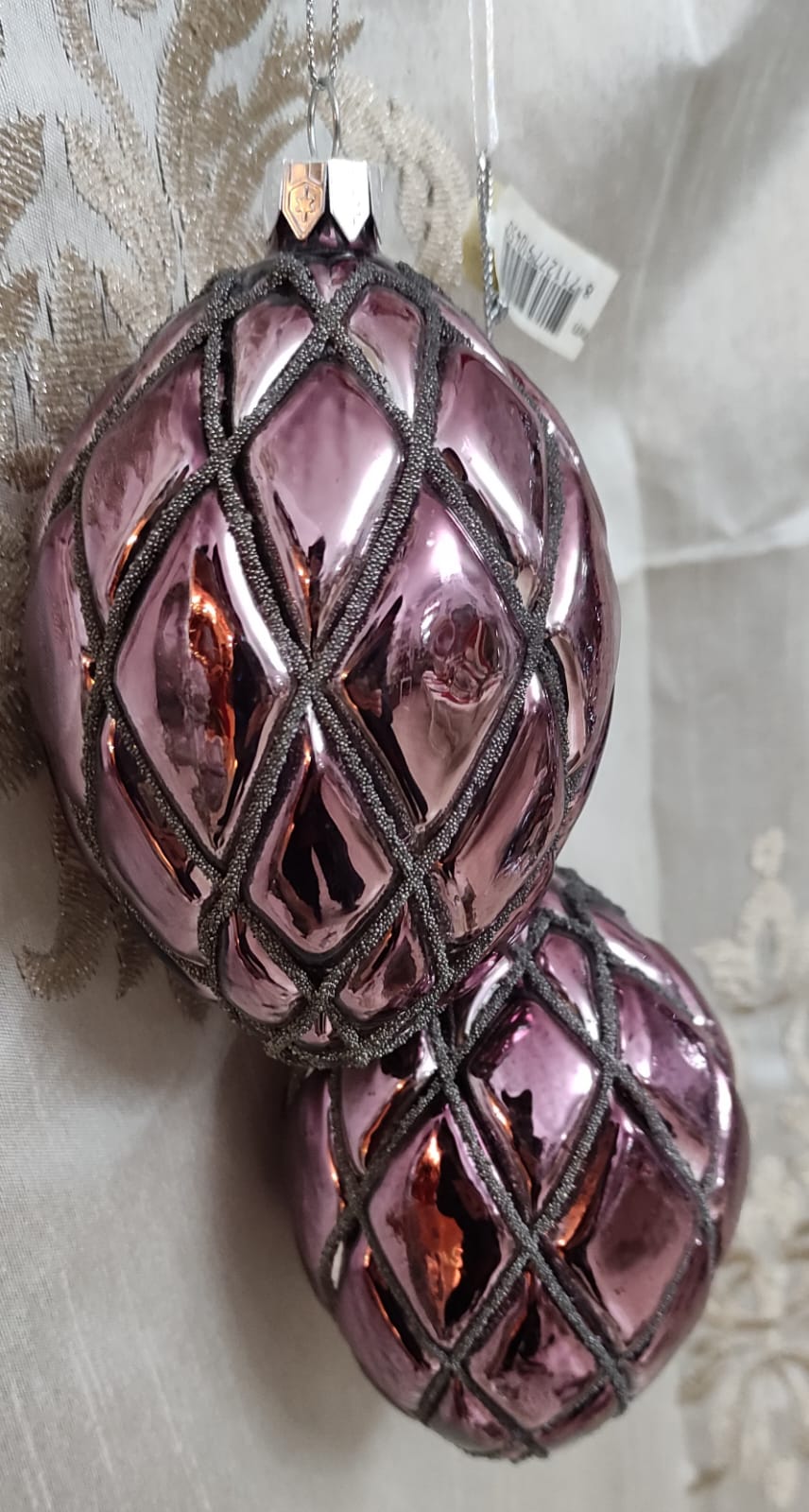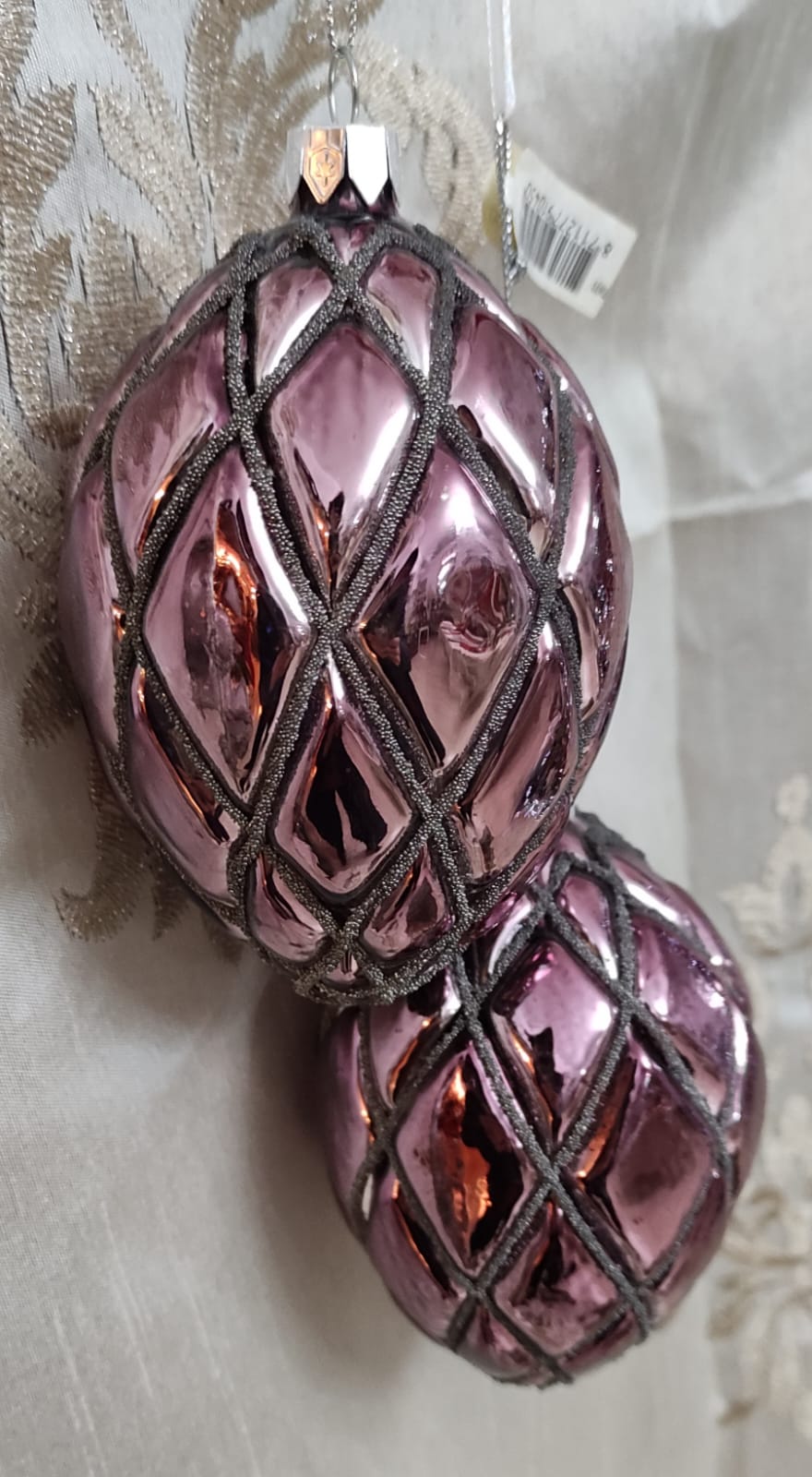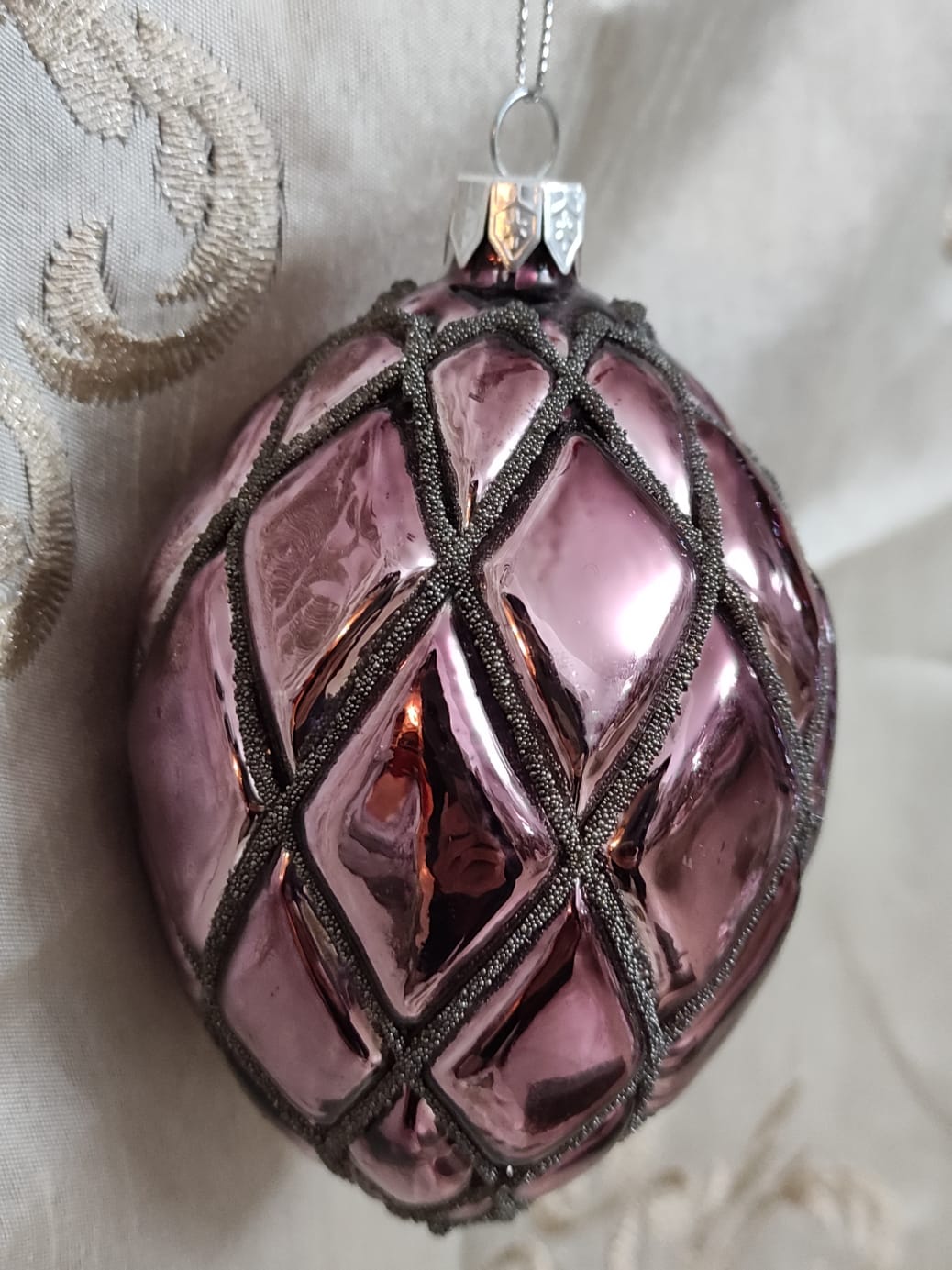 Decorazione vetro rosa con glitter per albero di Natale