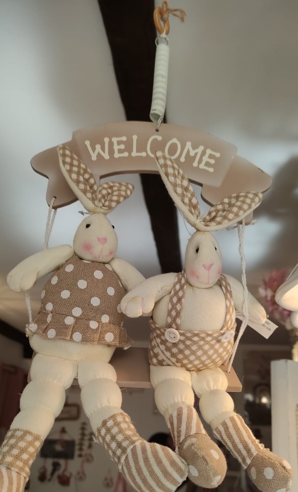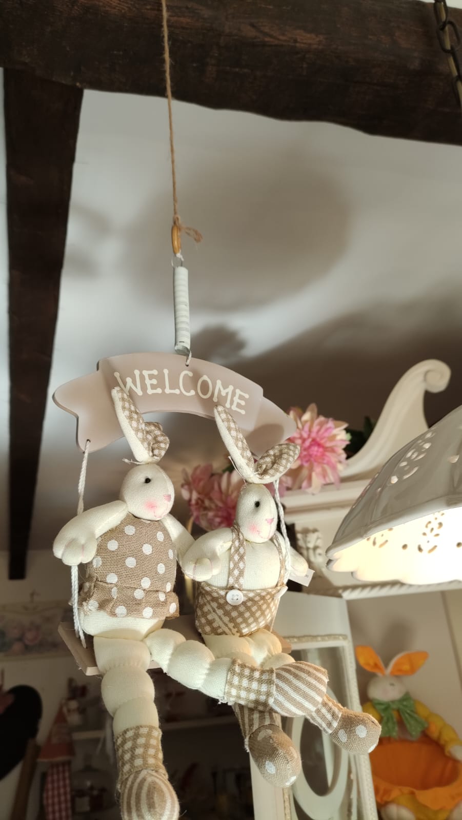 DECORO CONIGLI SU ALTALENA DA APPENDERE