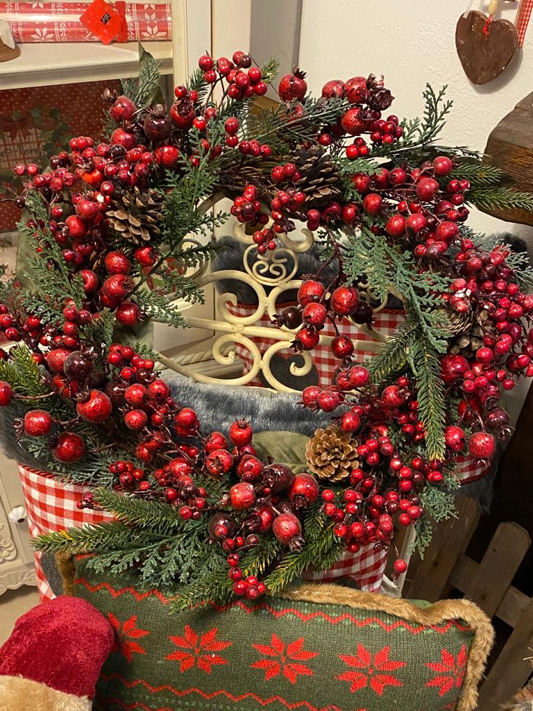 Ghirlanda natalizia decorativa bacche rosse, diametro 35cm