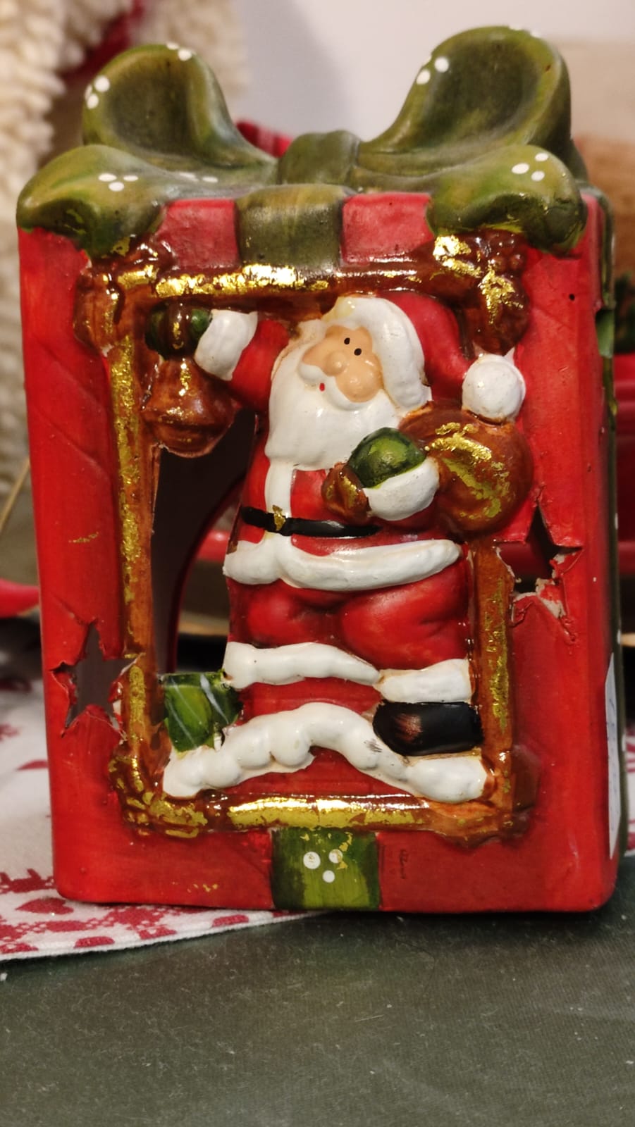 Lanterna porta tealight natalizia forma pacco regalo altezza 13cm