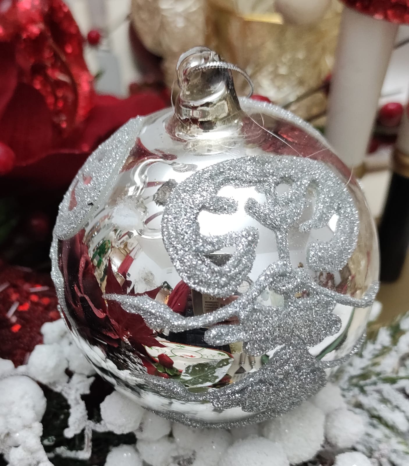 PALLINA DI NATALE ARGENTO CON GLITTER
