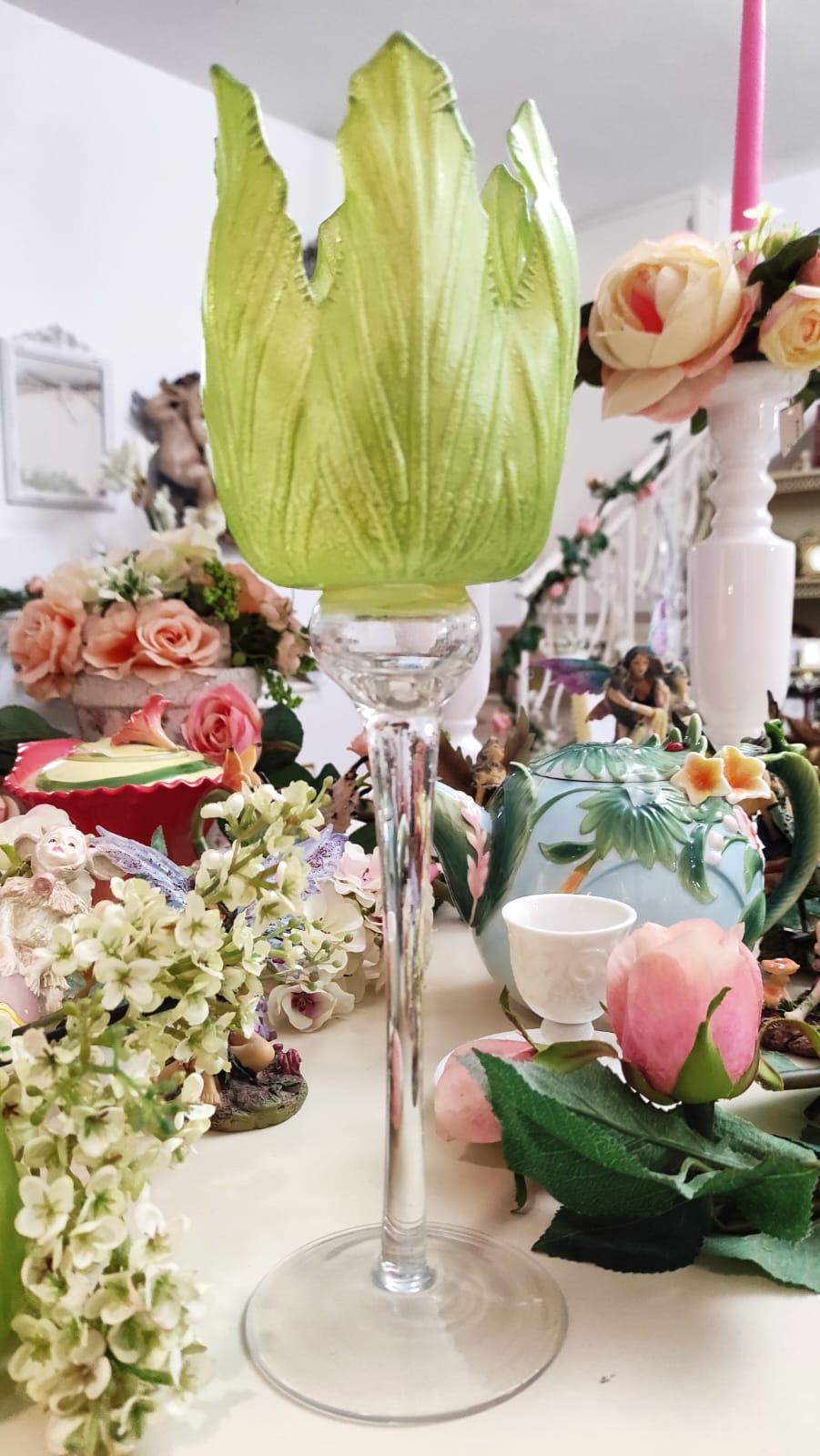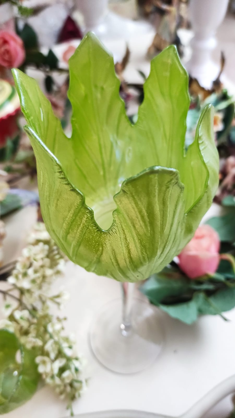 PORTA CANDELA FOGLIA VERDE