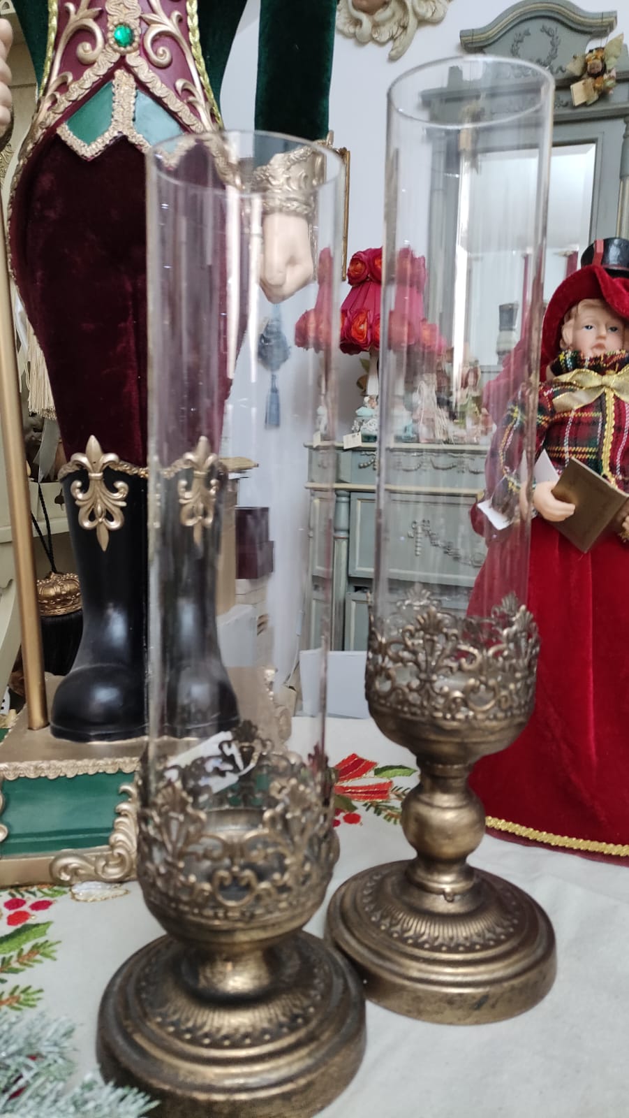 PORTACANDELA ORO LAVORATO E VETRO - GRANDE