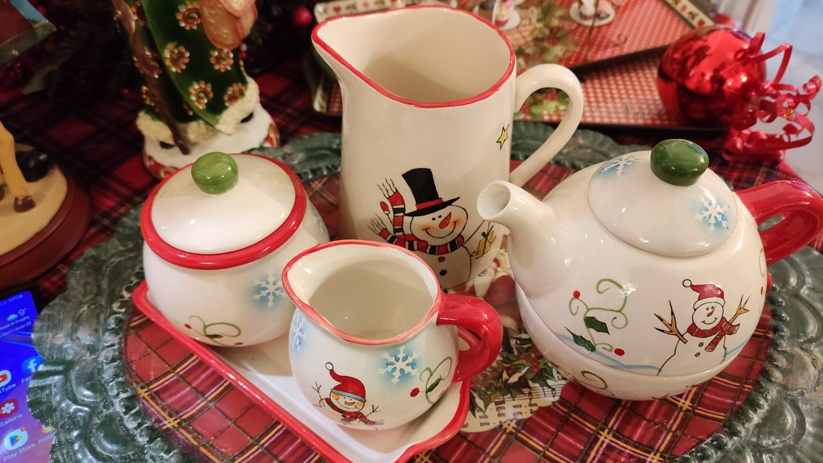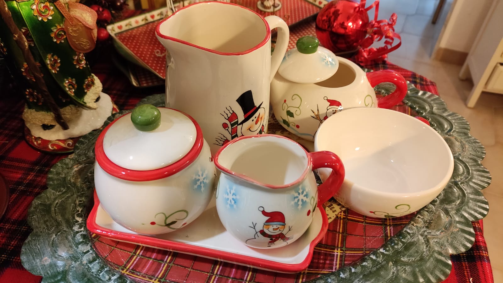 Set per tè/ colazione bianco e rosso con motivi natalizi