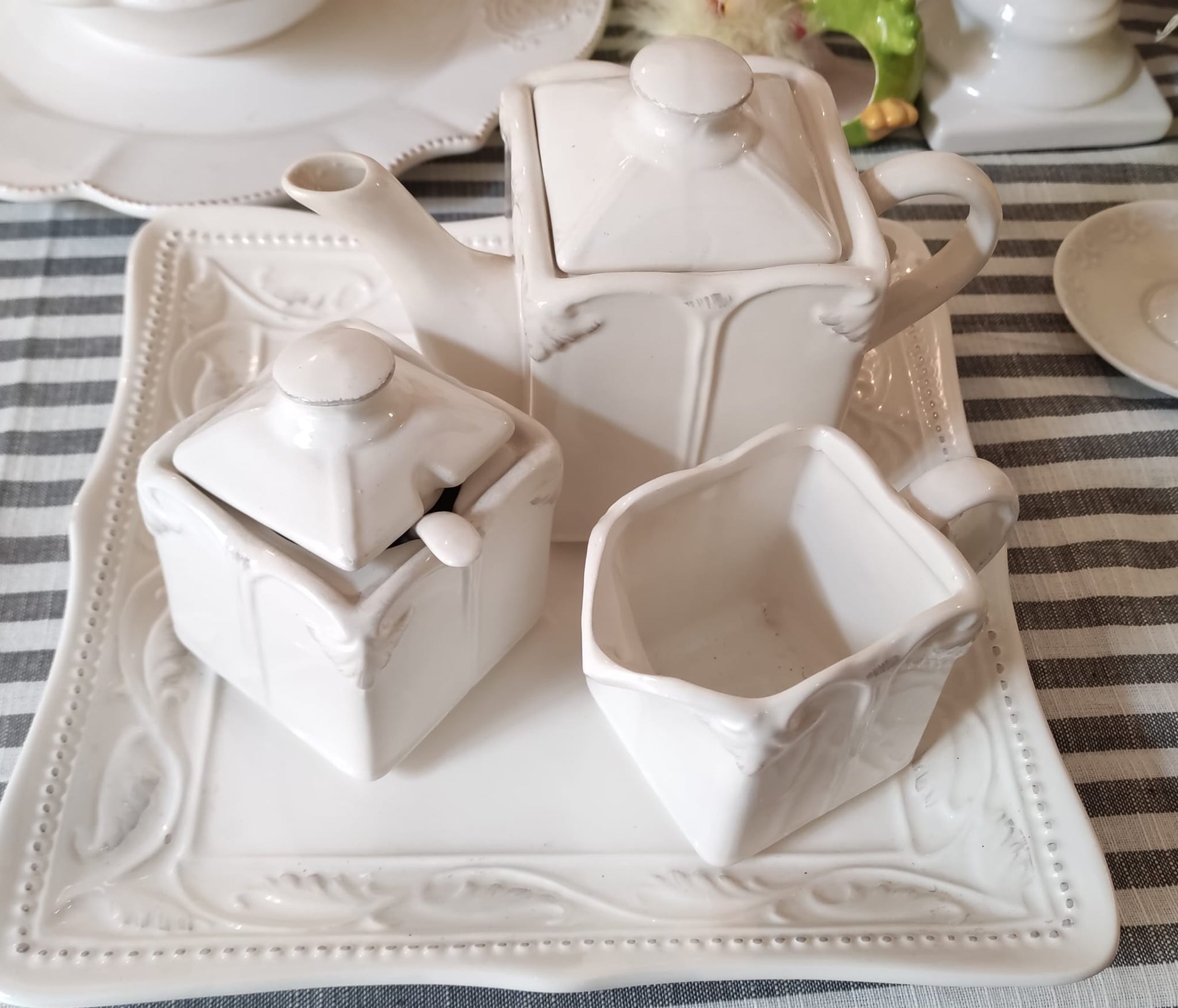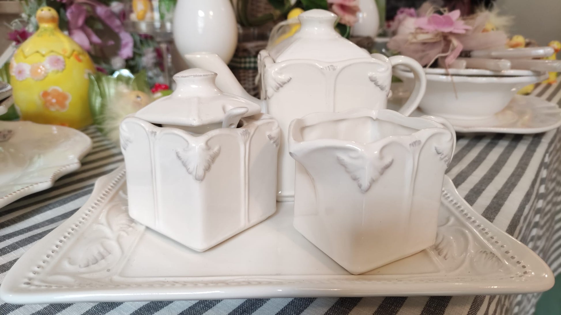 SET TEIERA - ZUCCHERIERA - LATTIERA BIANCO CON PIATTO PORTATA
