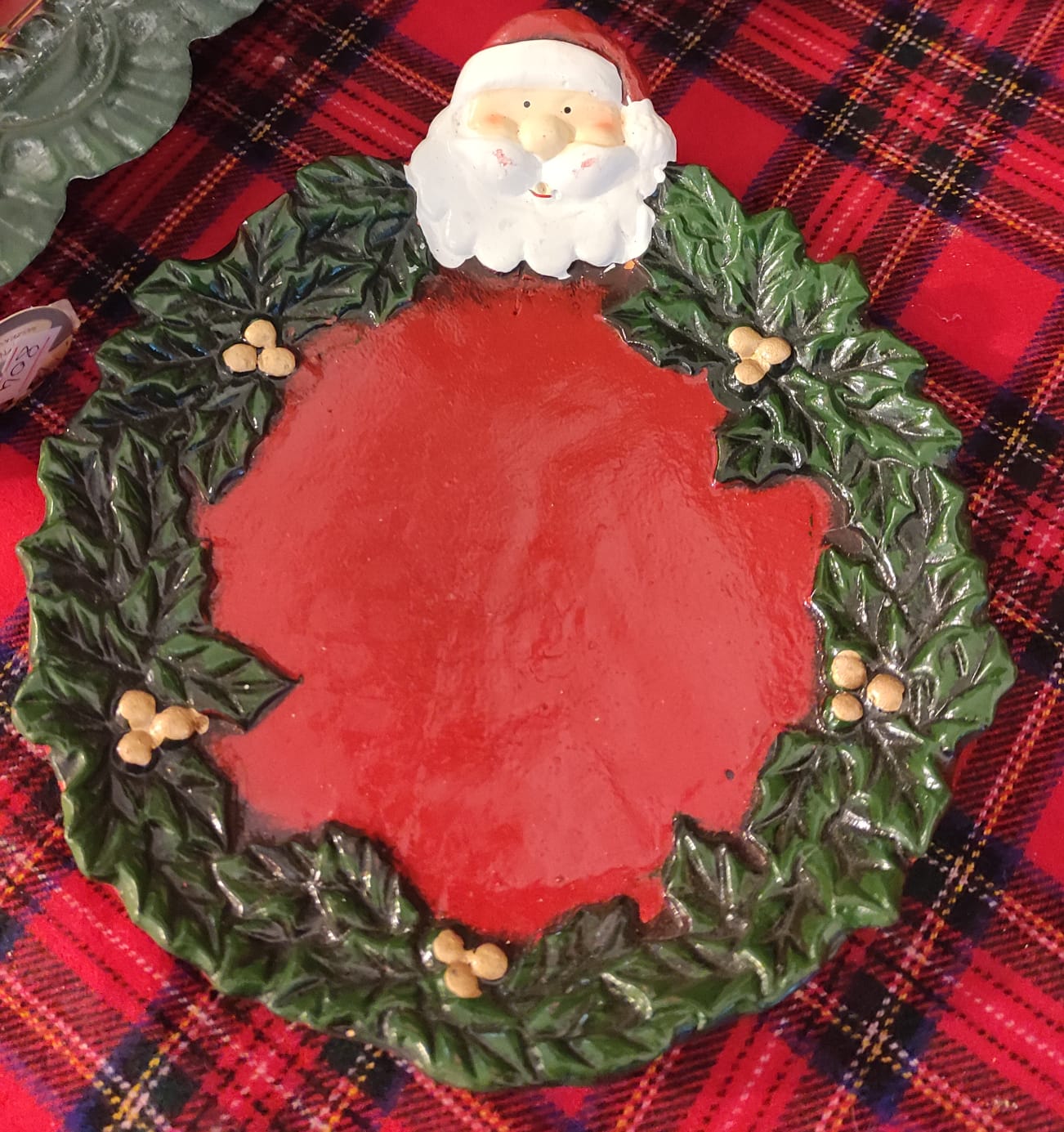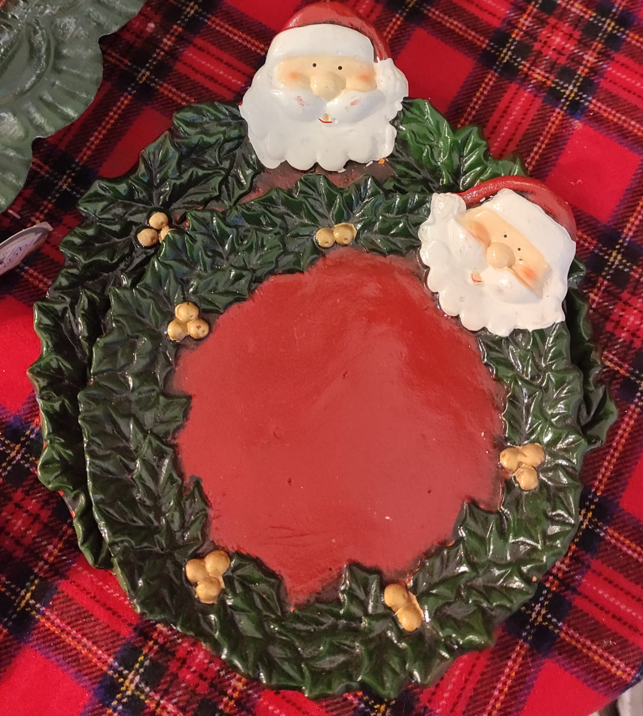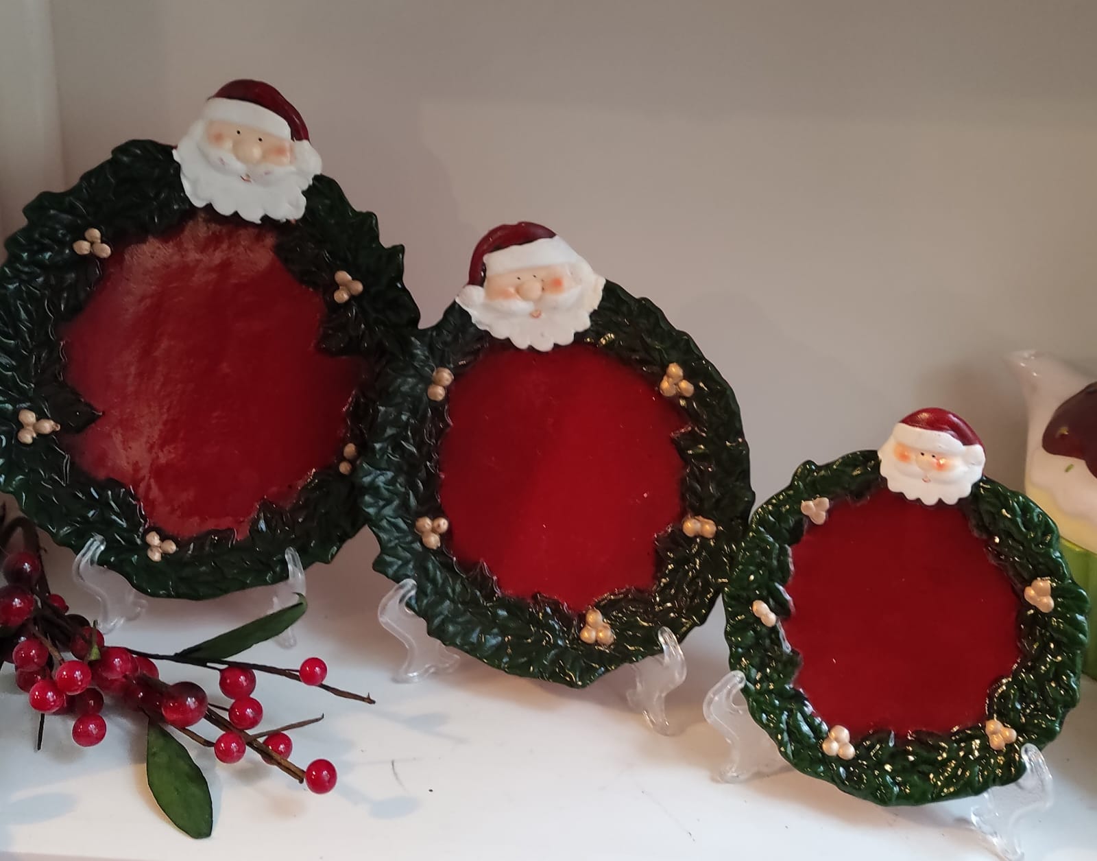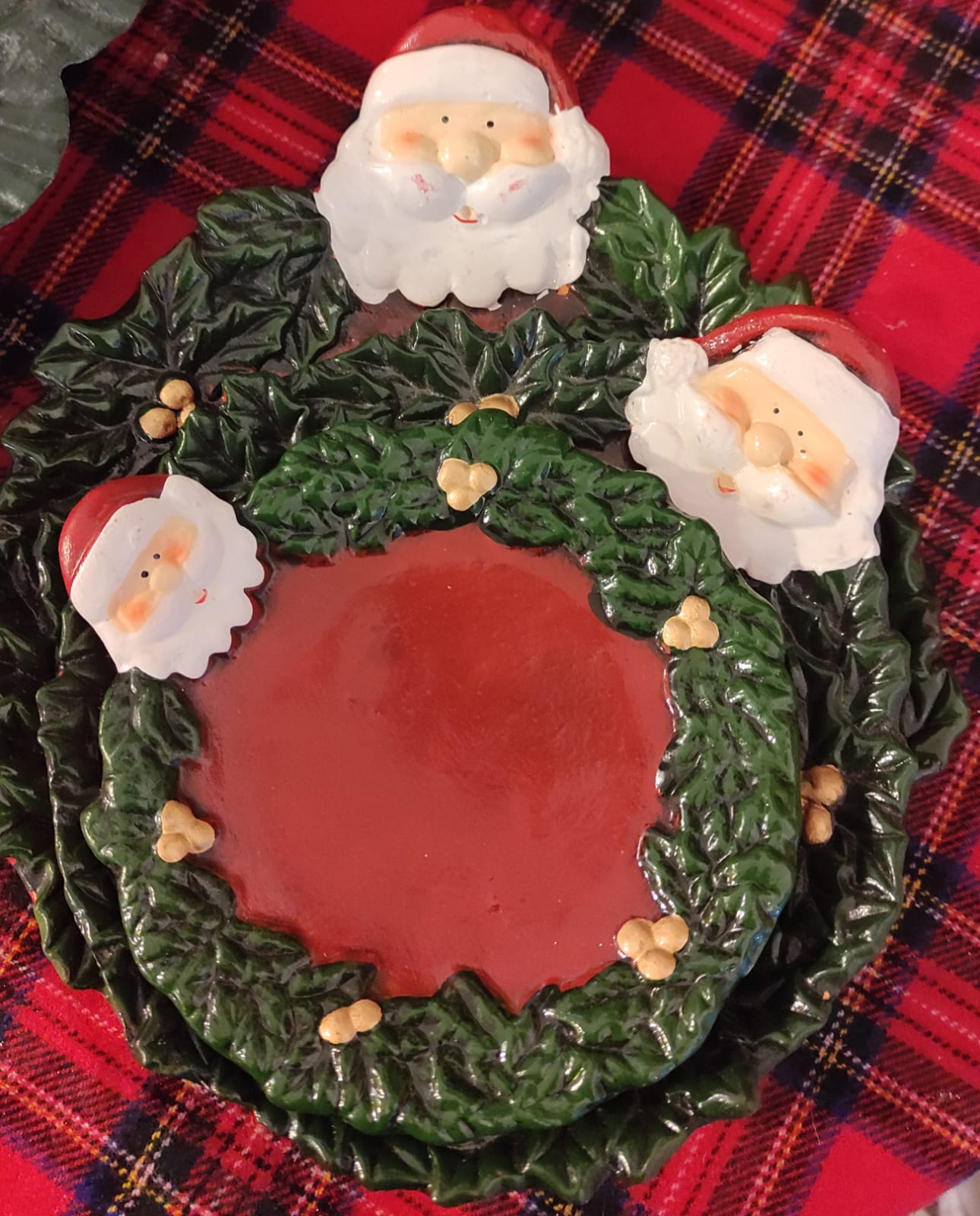 Set tre piattini porta cioccolatini con babbo natale e ghirlanda cm 21 cm 18 cm 14