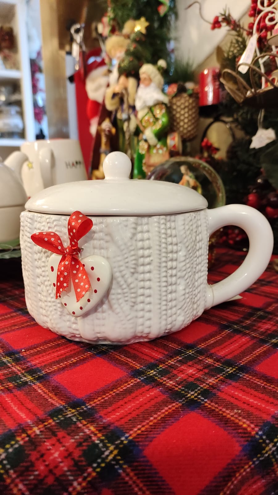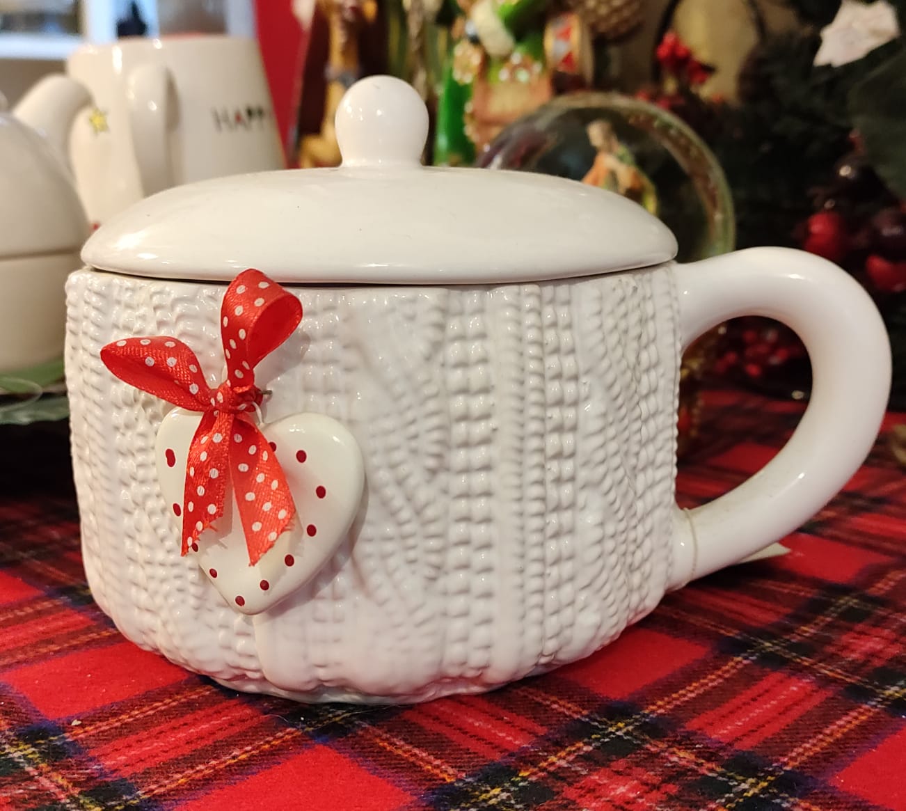 Tazzone con coperchio effetto maglia / porta biscotti cm 13 h x 17