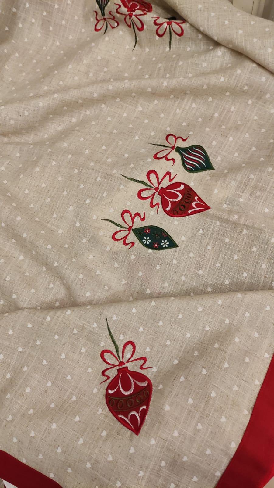Tovaglia con bordo rosso con fondo cuoricini e decorazione natalizia cm 180x140