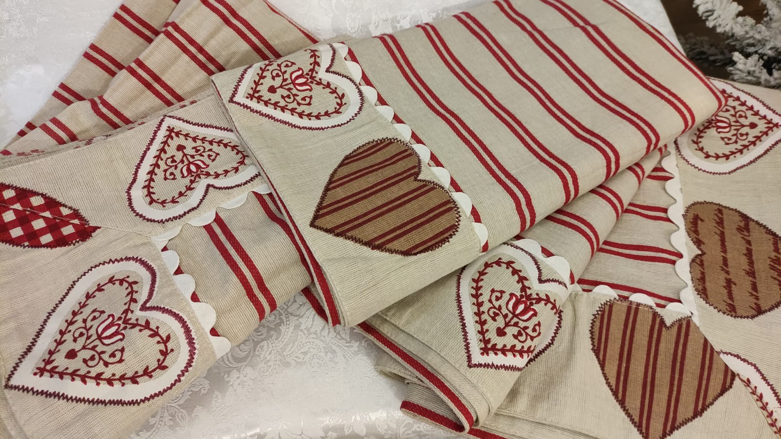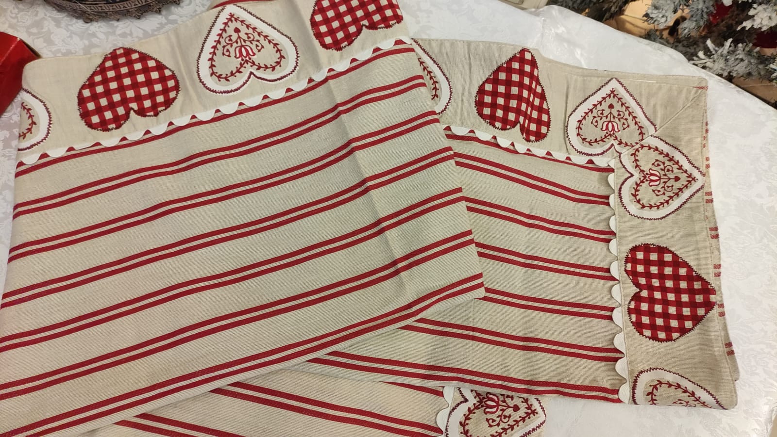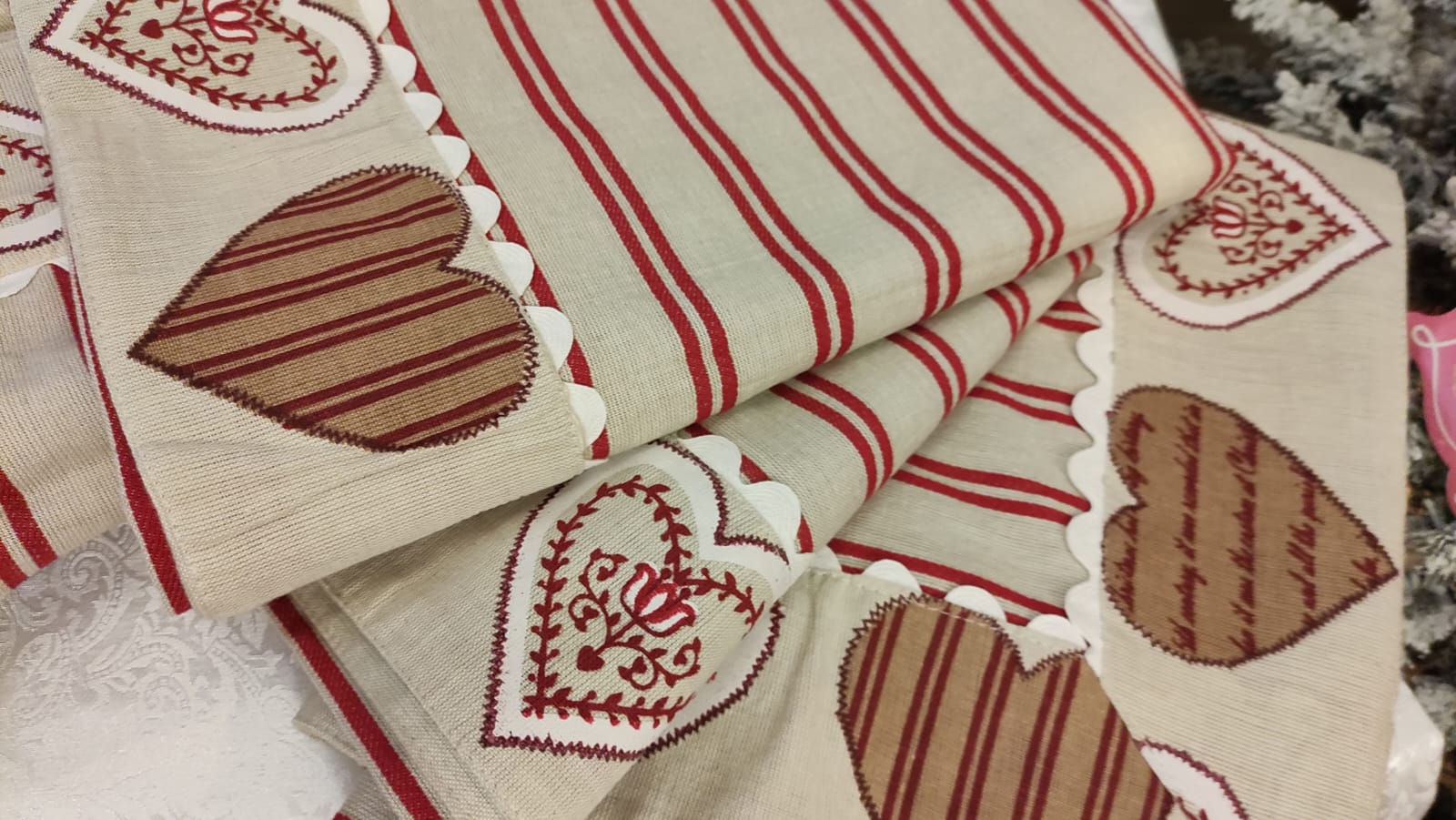 Tovaglia rettangolare con cuori e righe cm 180x140