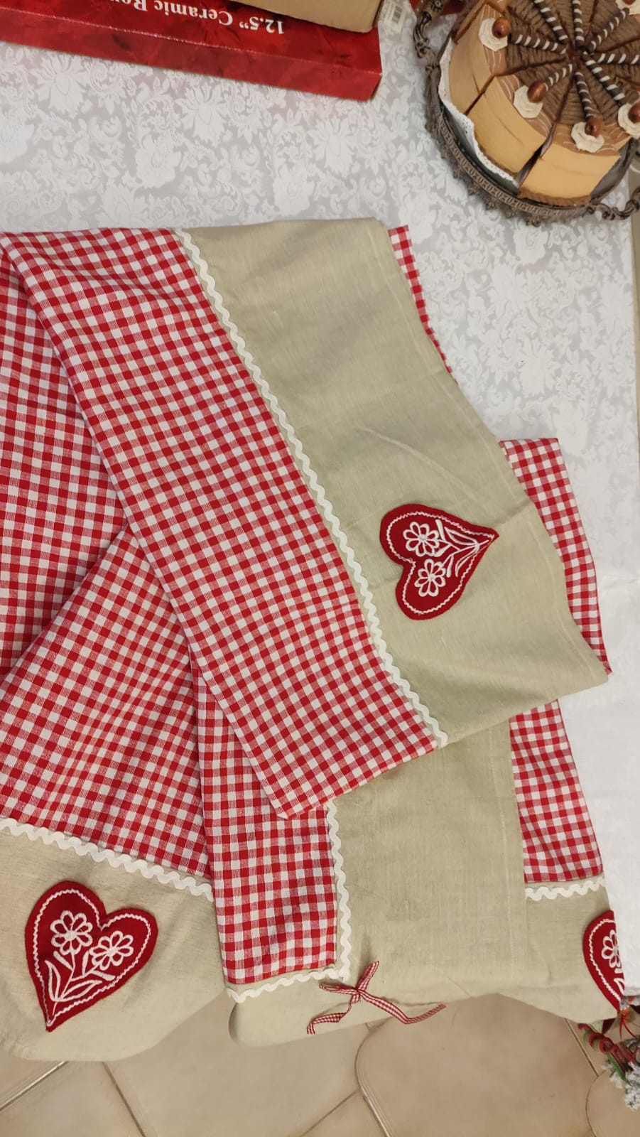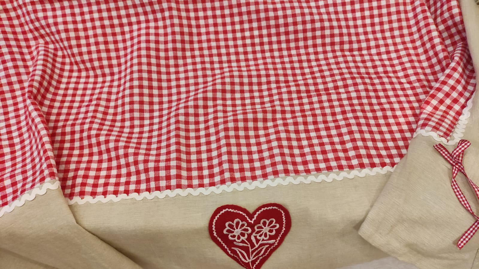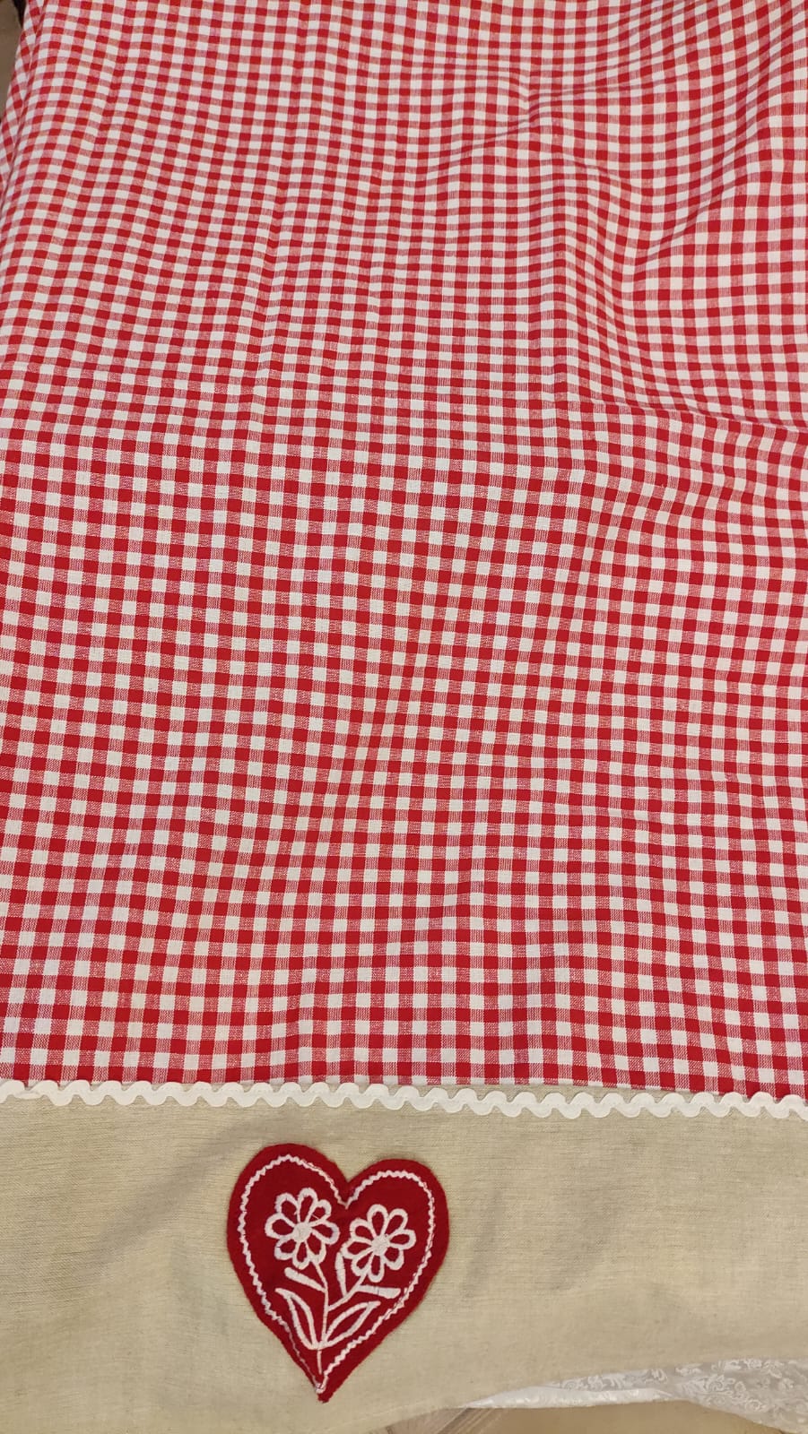 Tovaglia a quadretti rossi con cuori cm 220x140