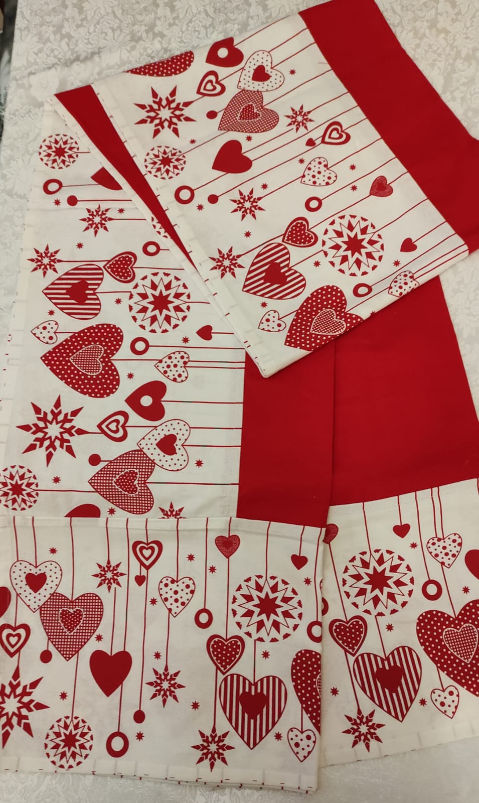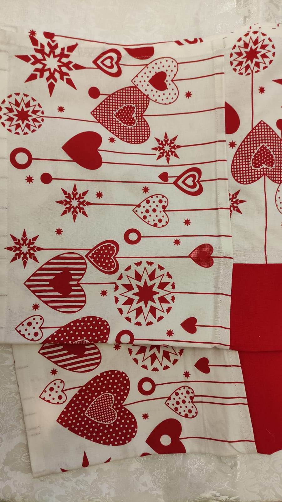 TOVAGLIA NATALIZIA ROSSA CON CUORI