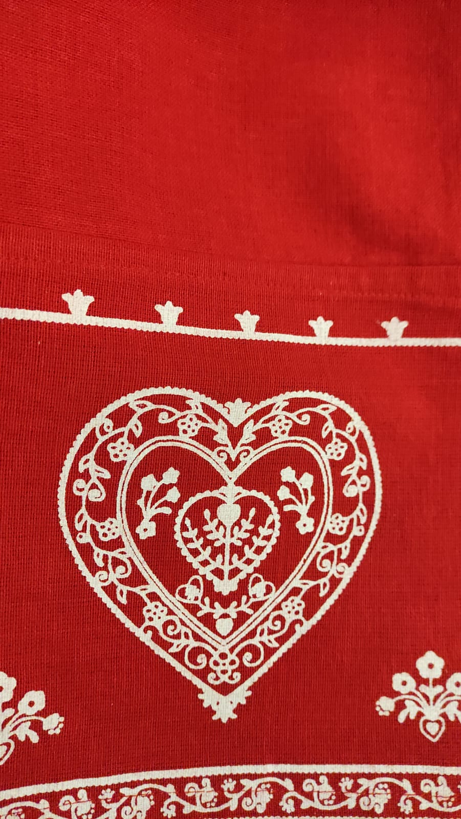 TOVAGLIA ROSSA CON CUORI E RENNE