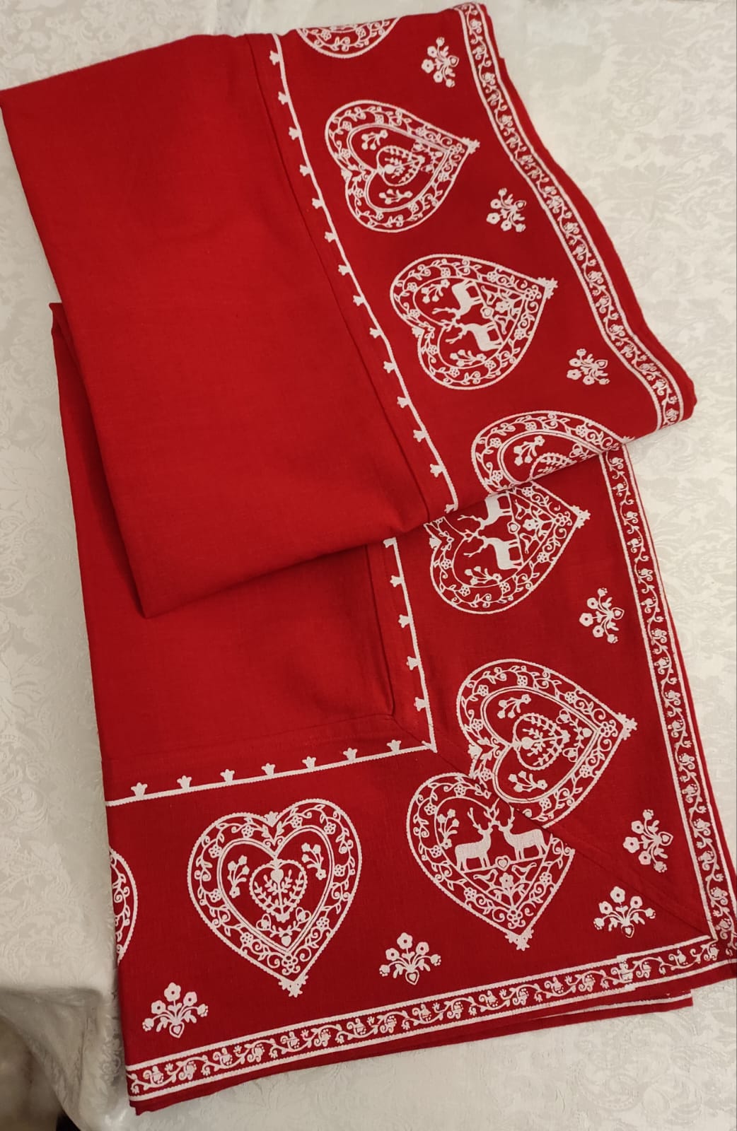 Tovaglia rossa con decorazione cuori e renne cm 220x140