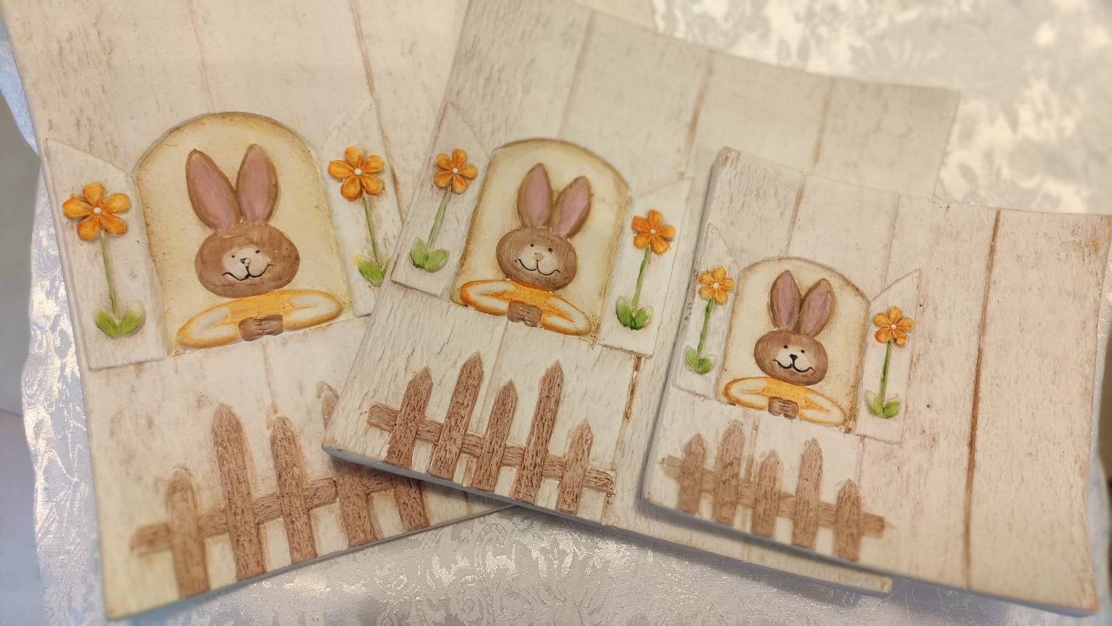 TRIS PIATTINI PORTA CIOCCOLATINI CONIGLIO